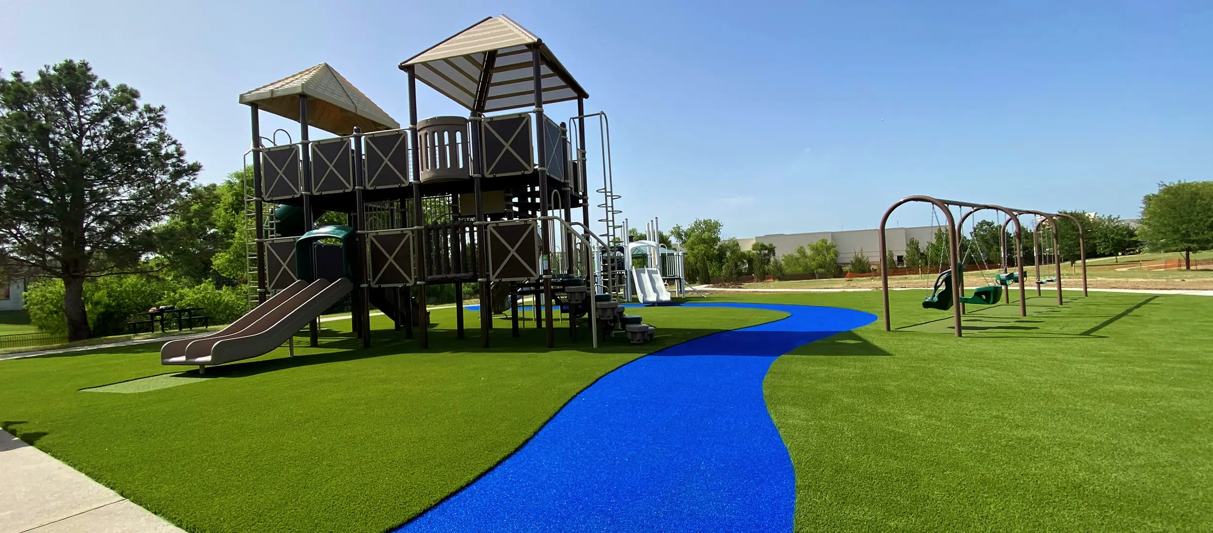 SYNLawn is proud to offer the safest, cleanest, and greenest Oklahoma playground turf systems available today. Our Oklahoma playground grass products meet exceptionally high safety standards and include the most advanced turf technologies found exclusively at SYNLawn. In addition, Oklahoma playground artificial grass does not require the traditional maintenance that would be expected of traditional sod or competing playground flooring systems, saving you time and money, and allowing you to spend it on your kids. No more watering, weed whacking, or mowing!