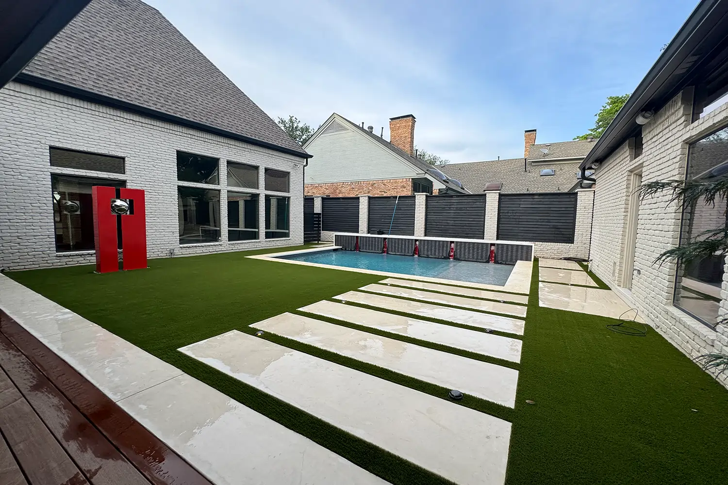 Our team provides expert design consultations and artificial turf installation tailored to your property’s unique conditions—whether flat, sloped, or landscaped with hardscaping. Every step, from base preparation to turf alignment, is handled with precision to ensure a seamless, long-lasting result.